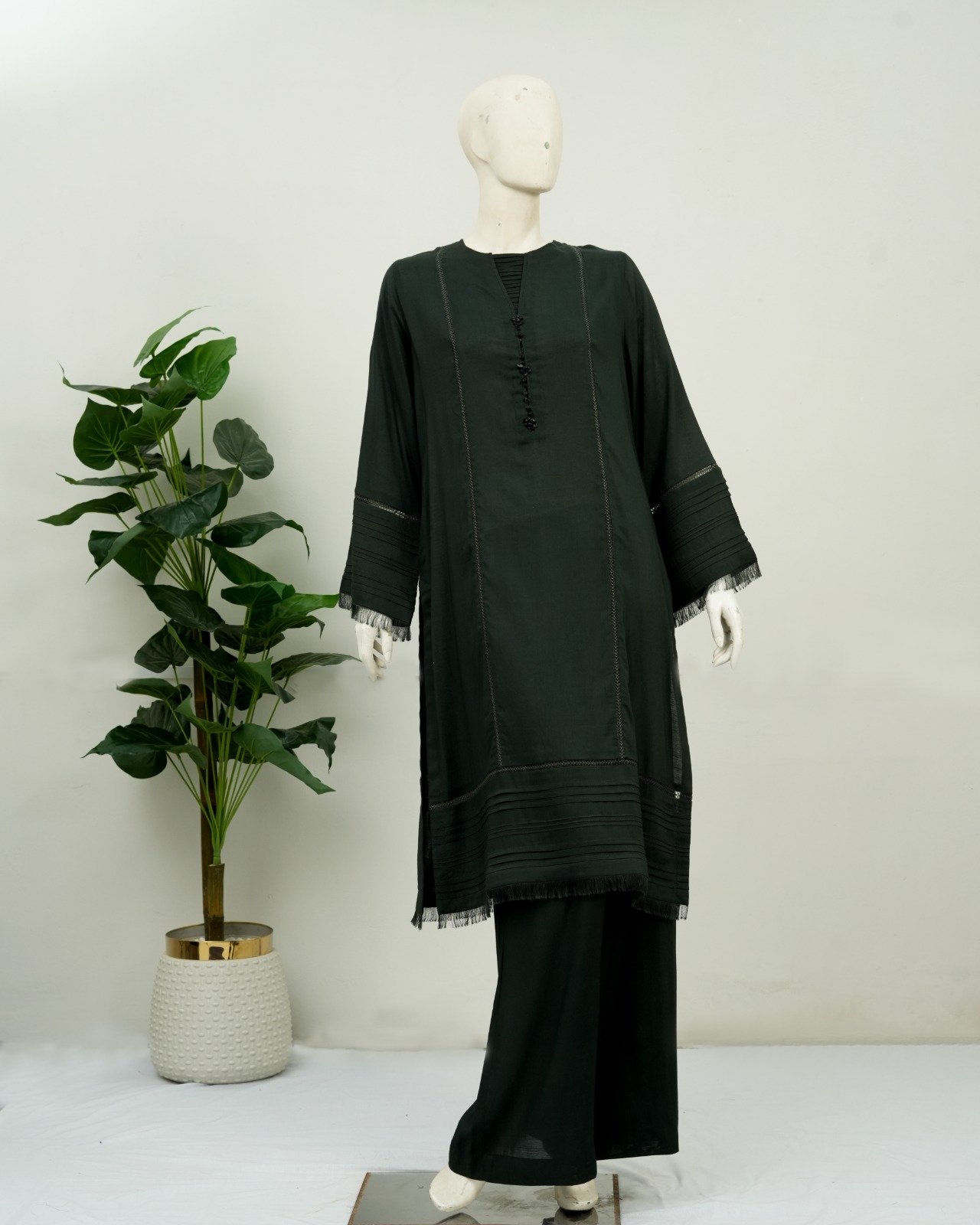 Make a bold and elegant statement with our Plain Dark Green Solid Russian Rao-Silk 2-Piece Set. Crafted from luxurious Russian Rao-Silk, this outfit offers a rich, smooth texture that drapes beautifully, ensuring a sophisticated and graceful look. The deep dark green hue adds a touch of royalty and timeless charm, making it an ideal choice for both formal and festive occasions.